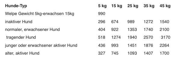 Was der Vierbeiner an Kcal so durchschnittlich braucht:
